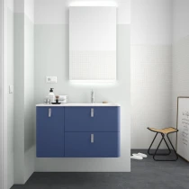 Kollektionen finns i tre varianter av tvättställsskåp: 60 cm med två lådor, 90 cm med dörr till höger samt 90 cm med dörr till vänster.