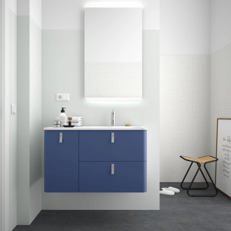 Håndvaskskab Avrel Venstre Havblå Mat 90 cm med Vask Hvid Mat & Håndtag Krom