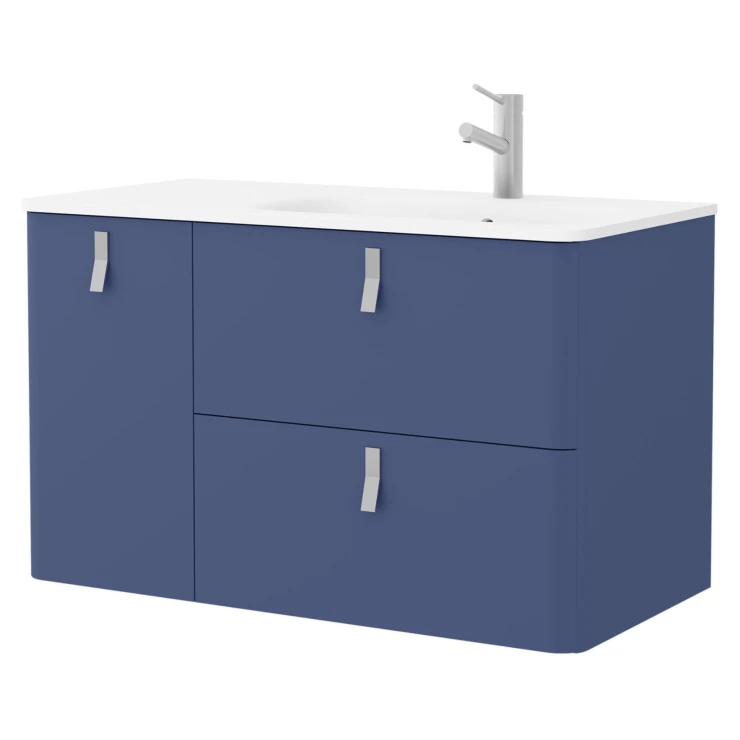 Tvättställsskåp Avrel Vänster Mörkblå Matt 90 cm med Handfat Vit Matt & Handtagen Krom