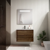 Tvättställsskåp Clarte Trä Mörk Matt 80 cm med Handfat Vit Blank