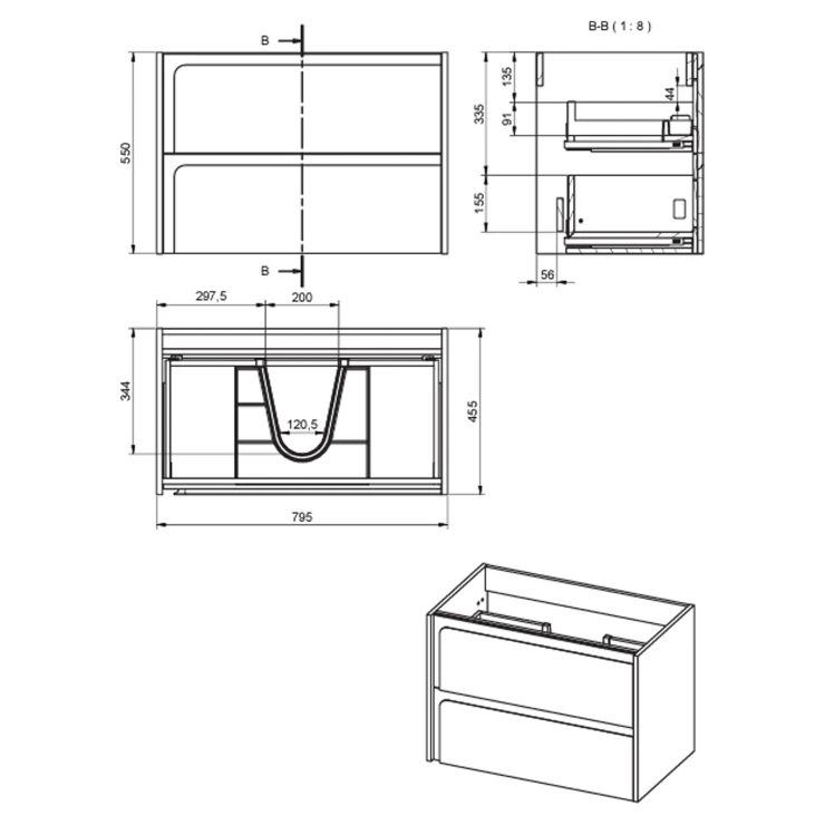 • - Fronter: 12 mm laminerad spånskiva + 16 mm MDF;