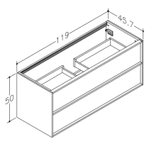 Nyd de integrerede ergonomiske greb i natur-eg og den rummelige opbevaring til dine ting i møbelelementets skuffer.