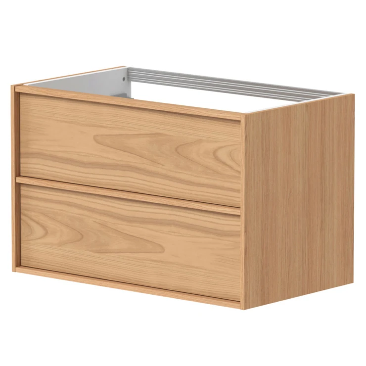Nyd de integrerede ergonomiske greb i naturlig eg og den gode opbevaringsplads til dine ting i de rummelige skuffer.
