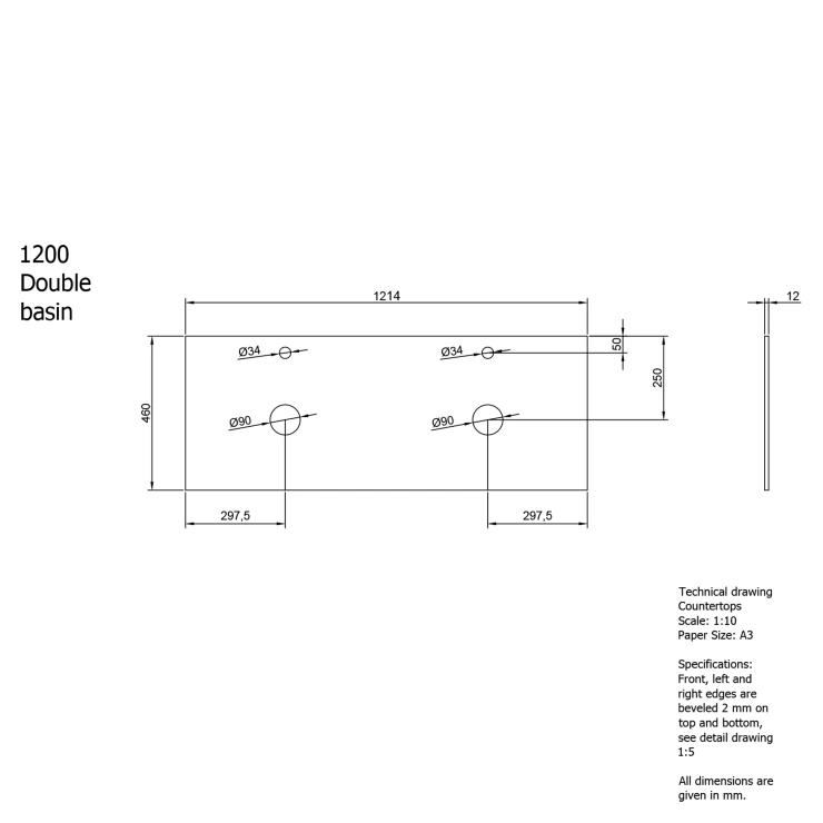 Håndvaskskab Ekskär Valnöt 120 cm med Dobbelt Cosentino Bordplade Dekton Sort Mat