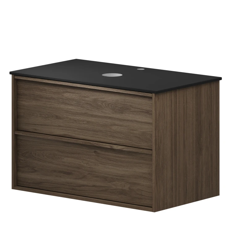 Håndvaskskab Ekskär Valnöt 80 cm med Cosentino Bordplade Dekton Sort Mat