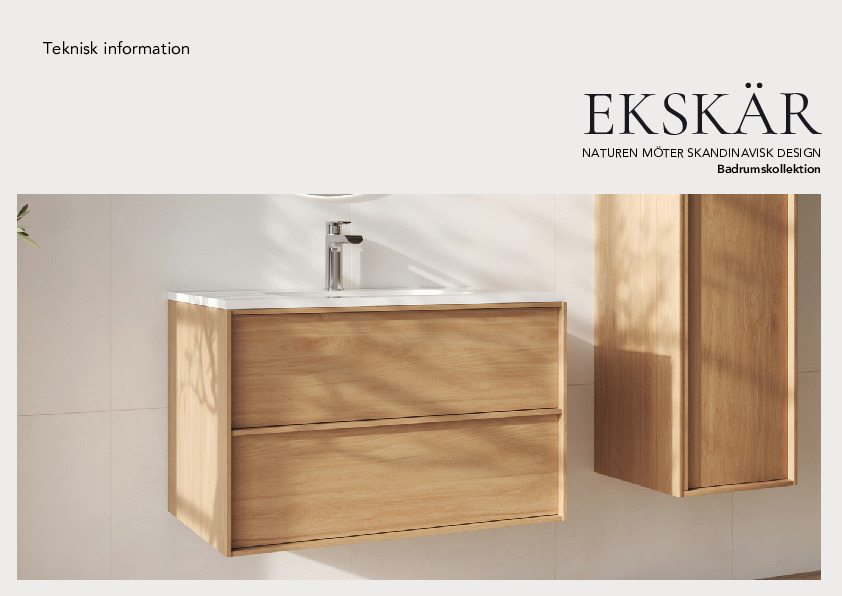 Med Ekskär får du ikke kun et elegant udseende, men også tryghed med fem års garanti som standard. Det gør kollektionen til et pålideligt valg for dig, der ønsker at investere i langtidsholdbare badeværelsesmøbler. Ekskär kombinerer skandinavisk enkelhed med praktisk funktion og naturlige materialer – en serie for dig, der vil skabe et badeværelse med både varme, æstetik og høj kvalitet.