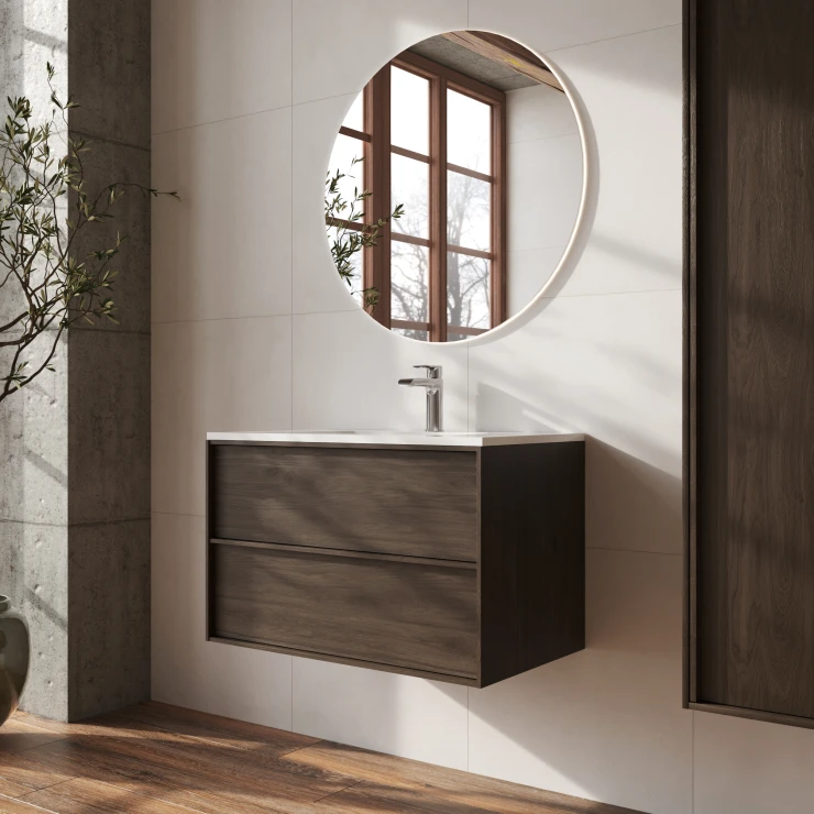 Ekskär – en unik kombination af moderne design og ægte egetræsfinerstrukturer. Det skandinaviske minimalistiske design med ensartede linjer og varme trætoner smelter elegant ind i dit hjem og skaber en følelse af komfort og enkelhed. Denne alsidige kollektion passer perfekt til alle stilarter af badeværelsesindretning. Ved udviklingen af Ekskär-serien blev der lagt særlig vægt på innovation og funktion for at imødekomme alles forventninger og behov.