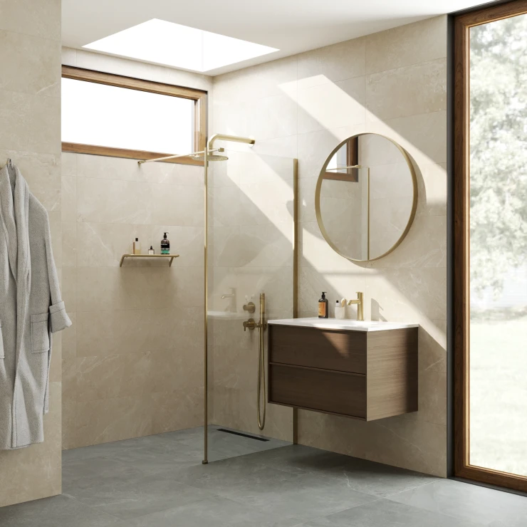 Ekskär er en premiumkollektion af badeværelsesmøbler, hvor kvalitet, design og funktion mødes i perfekt balance. Serien tilbyder et bredt udvalg af størrelser og variationer, hvilket gør det nemt at finde den rette løsning til både små og store badeværelser. Med en mat overflade, der giver et dæmpet og moderne udtryk, bliver møblerne både elegante og lette at vedligeholde. De varme toner i beige og brun skaber en harmonisk atmosfære og gør, at møblerne passer lige godt i både moderne og klassiske miljøer.