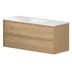 Nyd de integrerede ergonomiske greb i naturlig eg og den rummelige opbevaring til dine ting i skuffeelementets rummelige låger.