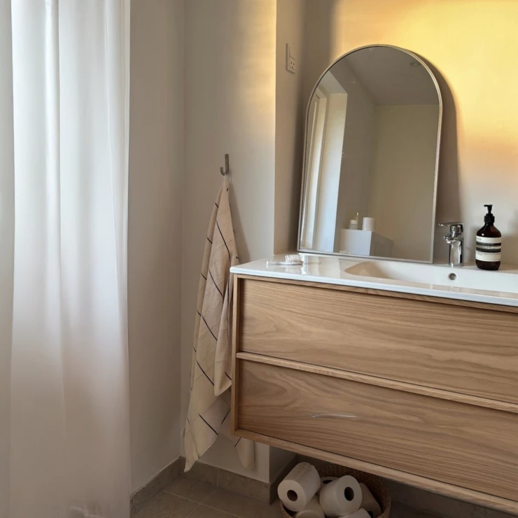 Ekskär – en unik kombination af moderne design og ægte egetræsfinerstrukturer. Det skandinaviske minimalistiske design med ensartede linjer og varme trætoner smelter elegant ind i dit hjem og skaber en følelse af komfort og enkelhed. Denne alsidige kollektion passer perfekt til alle stilarter af badeværelsesindretning. Ved udviklingen af Ekskär-serien blev der lagt særlig vægt på innovation og funktion for at imødekomme alles forventninger og behov.