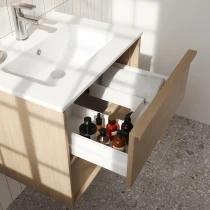 Ekskär – en unik kombination af moderne design og ægte egetræsfinerstrukturer. Det skandinaviske minimalistiske design med ensartede linjer og varme trætoner smelter elegant ind i dit hjem og skaber en følelse af komfort og enkelhed. Denne alsidige kollektion passer perfekt til alle stilarter af badeværelsesindretning. Ved udviklingen af Ekskär-serien blev der lagt særlig vægt på innovation og funktion for at imødekomme alles forventninger og behov.