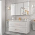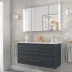 • Detta badrumsset innehåller: tvättställsskåp, tvättställ, handtagen