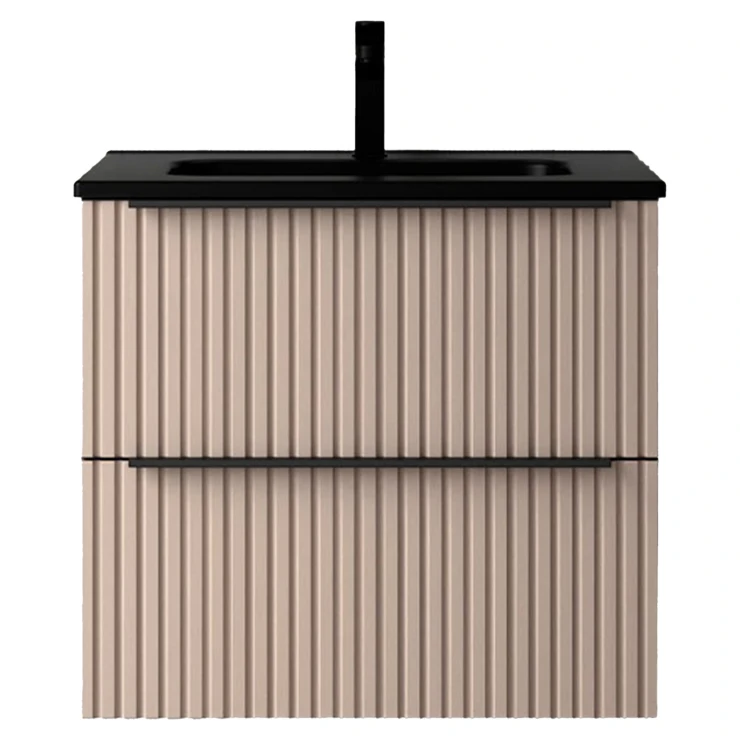 Håndvaskskab Runa Beige Mat 60 cm med 2 Skuffer & Vask Sort Mat