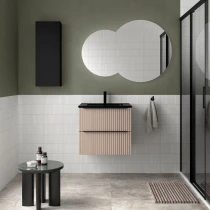 • Runa-serien är skapad för dig som vill ge ditt badrum personlighet och djup. Med sina vertikala spårfrästa fronter skapas en harmonisk rytm och känsla av rörelse som gör möbeln levande och unik.