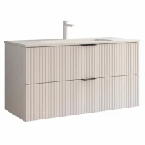• Runa-serien är skapad för dig som vill ge ditt badrum personlighet och djup. Med sina vertikala spårfrästa fronter skapas en harmonisk rytm och känsla av rörelse som gör möbeln levande och unik.