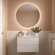 • Runa-serien är skapad för dig som vill ge ditt badrum personlighet och djup. Med sina vertikala spårfrästa fronter skapas en harmonisk rytm och känsla av rörelse som gör möbeln levande och unik.