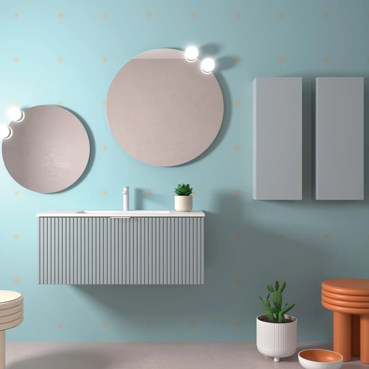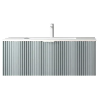 • Runa-serien är skapad för dig som vill ge ditt badrum personlighet och djup. Med sina vertikala spårfrästa fronter skapas en harmonisk rytm och känsla av rörelse som gör möbeln levande och unik.