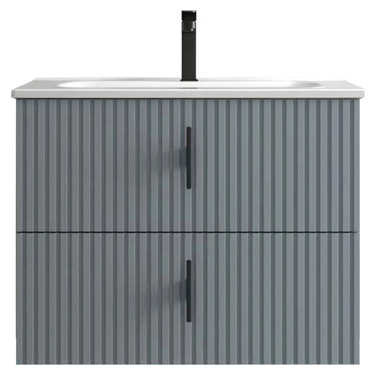 Håndvaskskab Runa Lyseblå Mat 70 cm med 2 Skuffer & Vask Hvid Blank