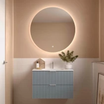 • Runa-serien är skapad för dig som vill ge ditt badrum personlighet och djup. Med sina vertikala spårfrästa fronter skapas en harmonisk rytm och känsla av rörelse som gör möbeln levande och unik.
