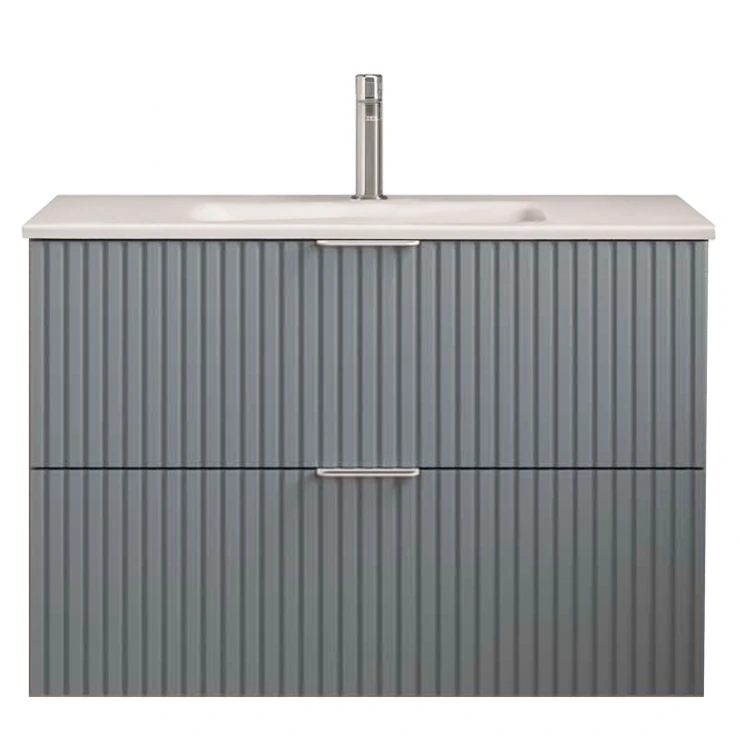 Håndvaskskab Runa Lyseblå Mat 80 cm med 2 Skuffer & Vask Hvid Mat