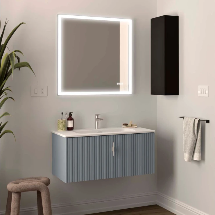 Håndvaskskab Runa Lyseblå Mat 90 cm med Vask Hvid Mat