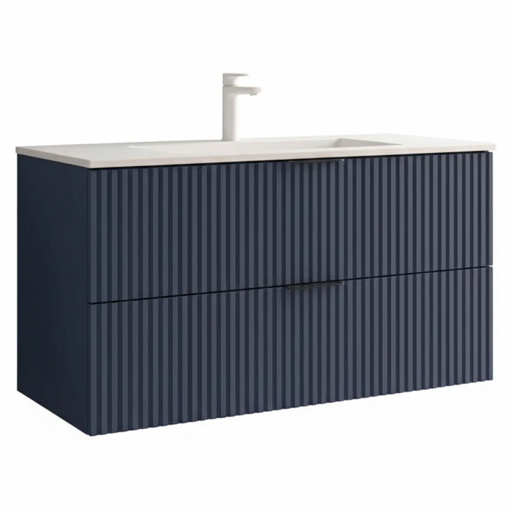 Tvättställsskåp Runa Mörkblå Matt 100 cm med 2 Lådor & Handfat Vit Matt