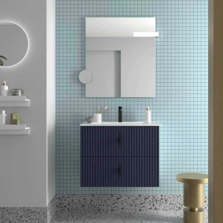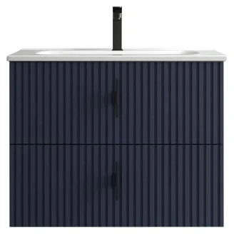 Håndvaskskab Runa Mørkeblå Mat 70 cm med 2 Skuffer & Vask Hvid Blank