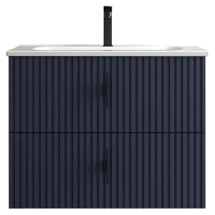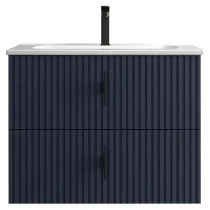 Tvättställsskåp Runa Mörkblå Matt 70 cm med 2 Lådor & Handfat Vit Blank