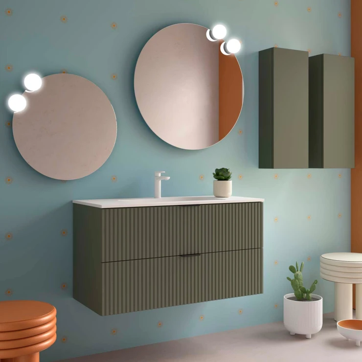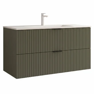 Håndvaskskab Runa Skovgrøn Mat 100 cm med 2 Skuffer & Vask Hvid Mat