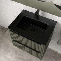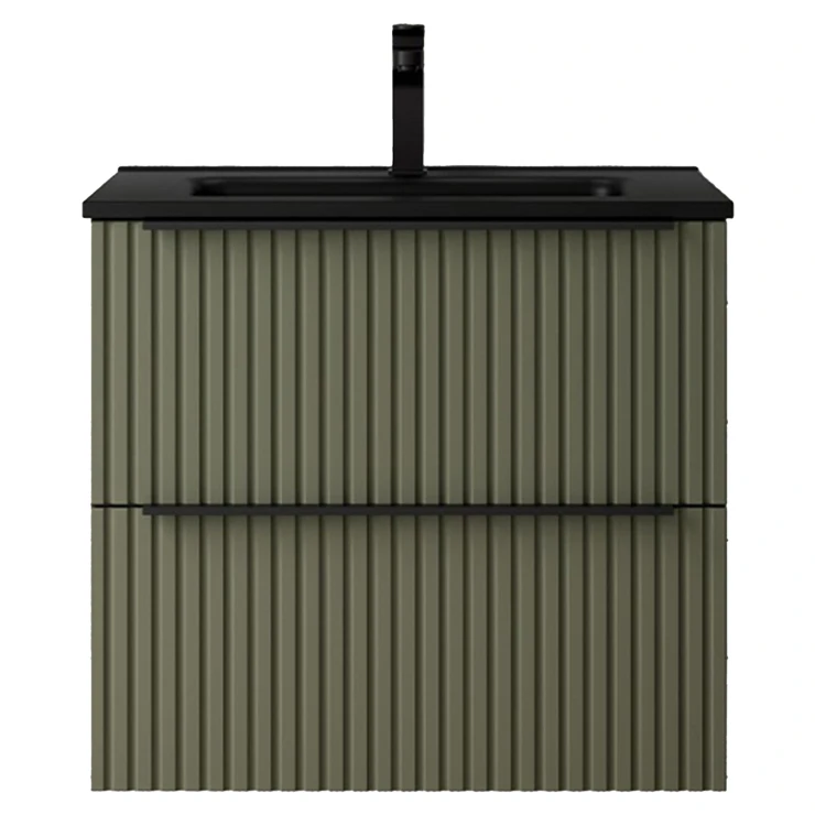Håndvaskskab Runa Skovgrøn Mat 60 cm med 2 Skuffer & Vask Sort Mat