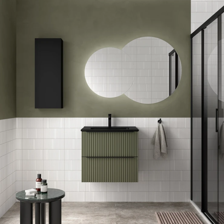 Tvättställsskåp Runa Skogsgrön Matt 60 cm med 2 Lådor & Handfat Svart Matt