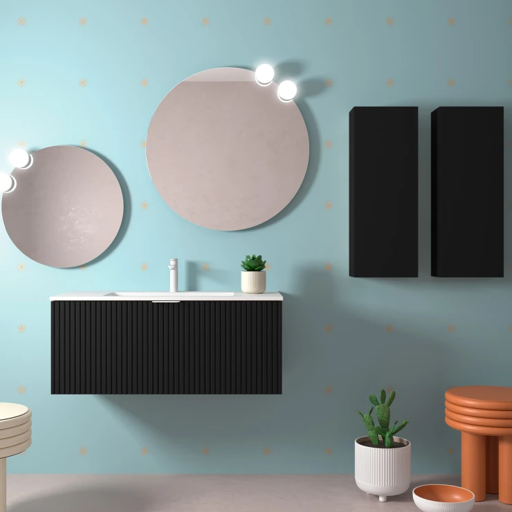 Håndvaskskab Runa Sort Mat 100 cm med Vask Hvid Mat