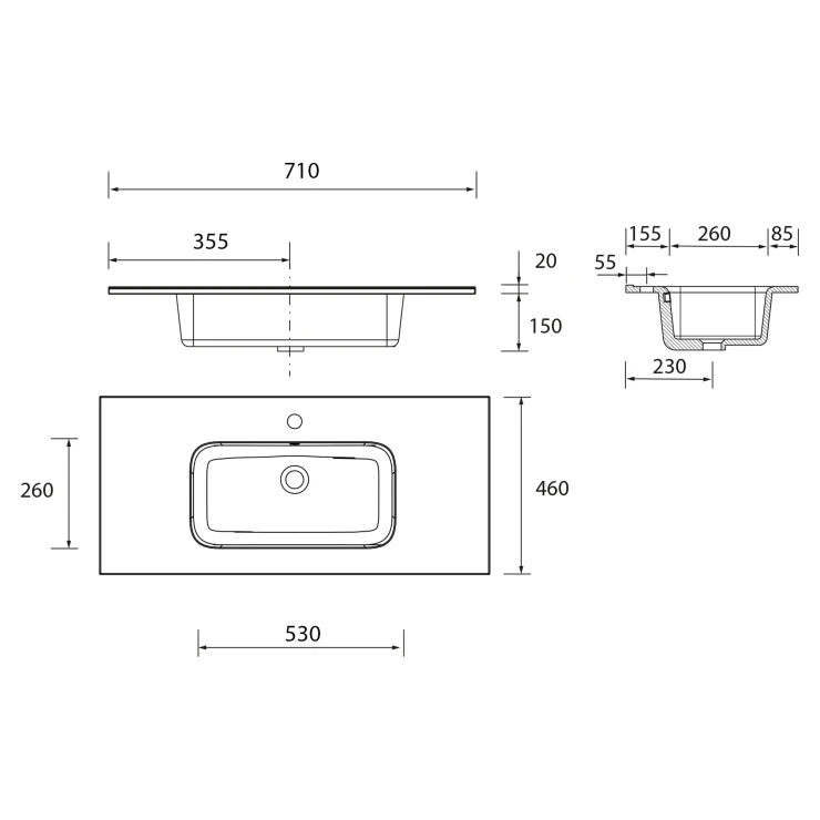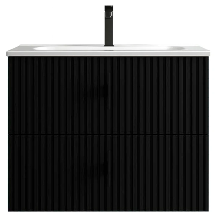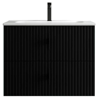 Håndvaskskab Runa Sort Mat 70 cm med 2 Skuffer & Vask Hvid Blank