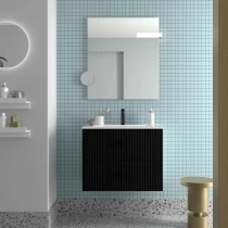 • Runa-serien är skapad för dig som vill ge ditt badrum personlighet och djup. Med sina vertikala spårfrästa fronter skapas en harmonisk rytm och känsla av rörelse som gör möbeln levande och unik.
