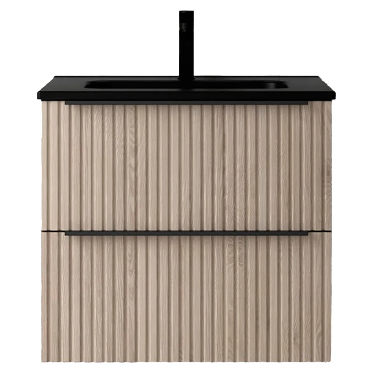 Håndvaskskab Runa Træ Naturlig Mat 60 cm med 2 Skuffer & Vask Sort Mat