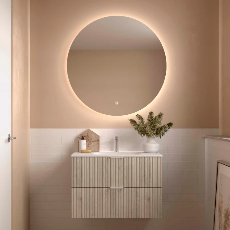 • Runa-serien är skapad för dig som vill ge ditt badrum personlighet och djup. Med sina vertikala spårfrästa fronter skapas en harmonisk rytm och känsla av rörelse som gör möbeln levande och unik.