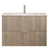 Håndvaskskab Runa Træ Naturlig Mat 80 cm med 2 Skuffer & Vask Hvid Mat