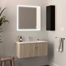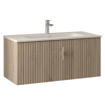 • Runa-serien är skapad för dig som vill ge ditt badrum personlighet och djup. Med sina vertikala spårfrästa fronter skapas en harmonisk rytm och känsla av rörelse som gör möbeln levande och unik.