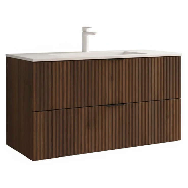 Håndvaskskab Runa Valnød Mat 100 cm med 2 Skuffer & Vask Hvid Mat