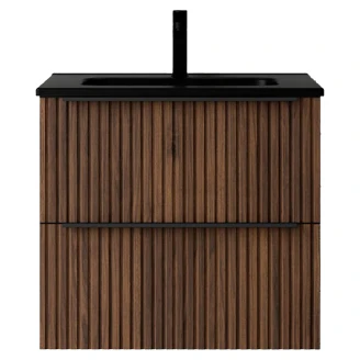 Håndvaskskab Runa Valnød Mat 60 cm med 2 Skuffer & Vask Sort Mat