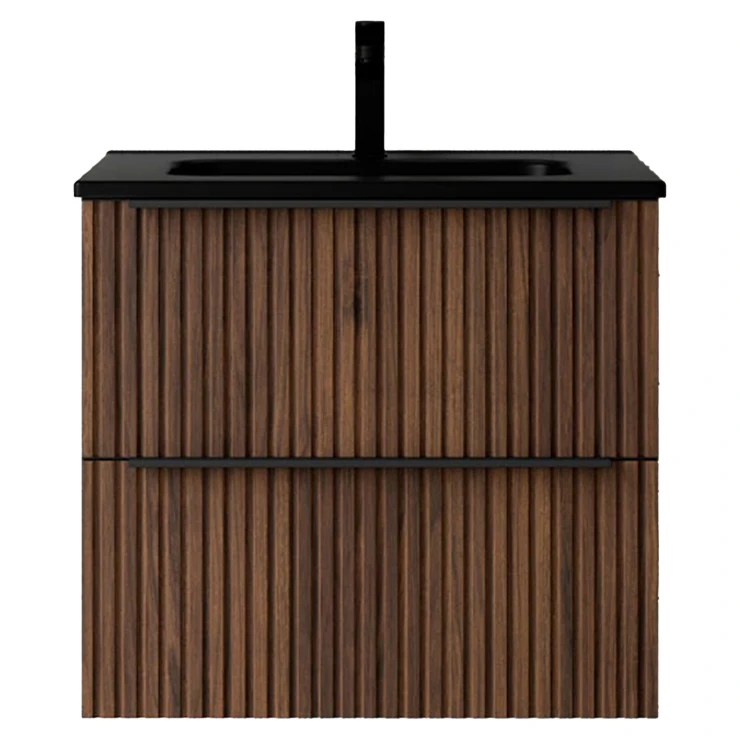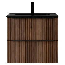 Tvättställsskåp Runa Valnöt Matt 60 cm med 2 Lådor & Handfat Svart Matt