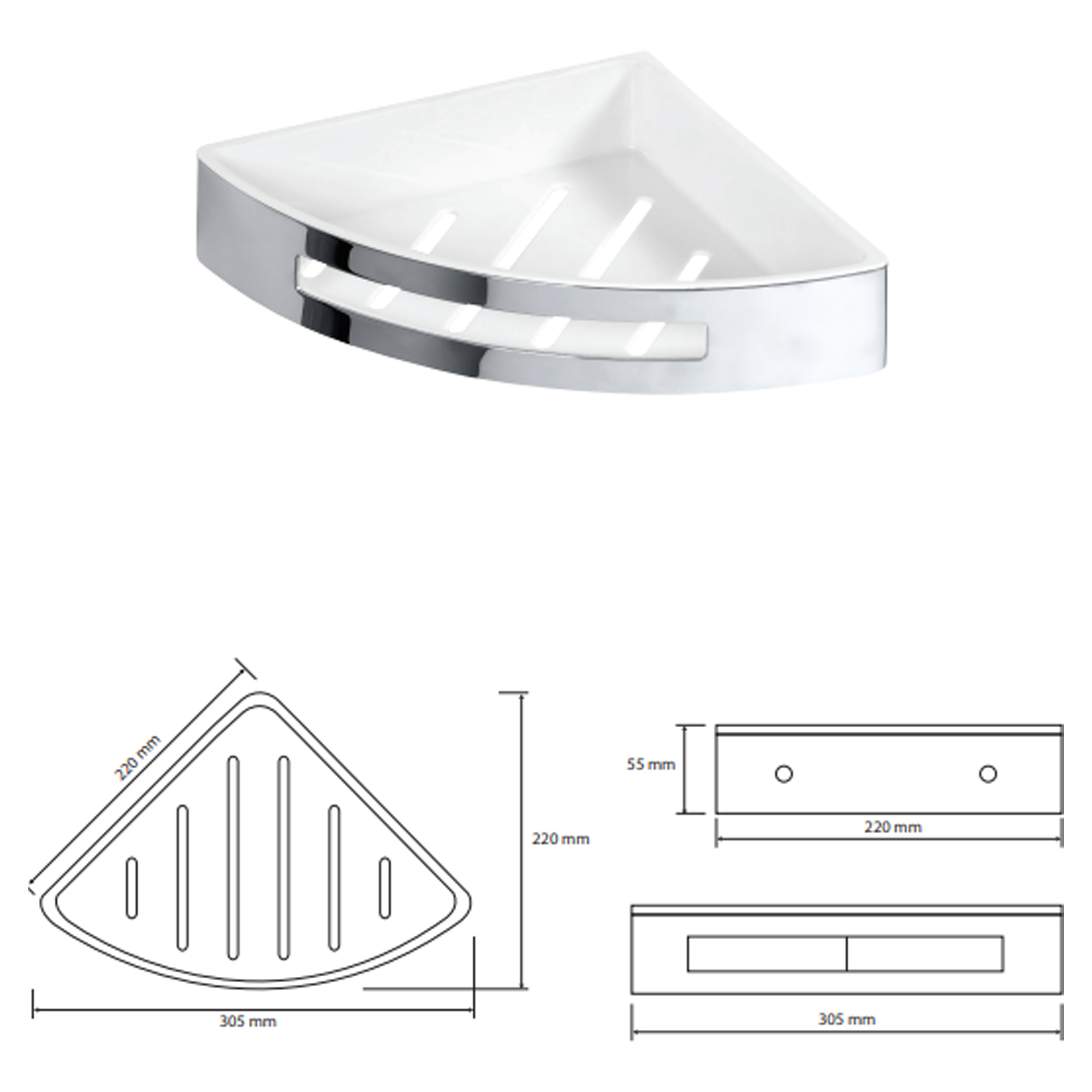 Serien passar perfekt vid duschhörnor, badkar och tvättställ. Ett särskilt praktiskt inslag är den hängande hyllan, som är flyttbar och enkel att ta bort – en flexibel lösning för ett modernt och organiserat badrum.