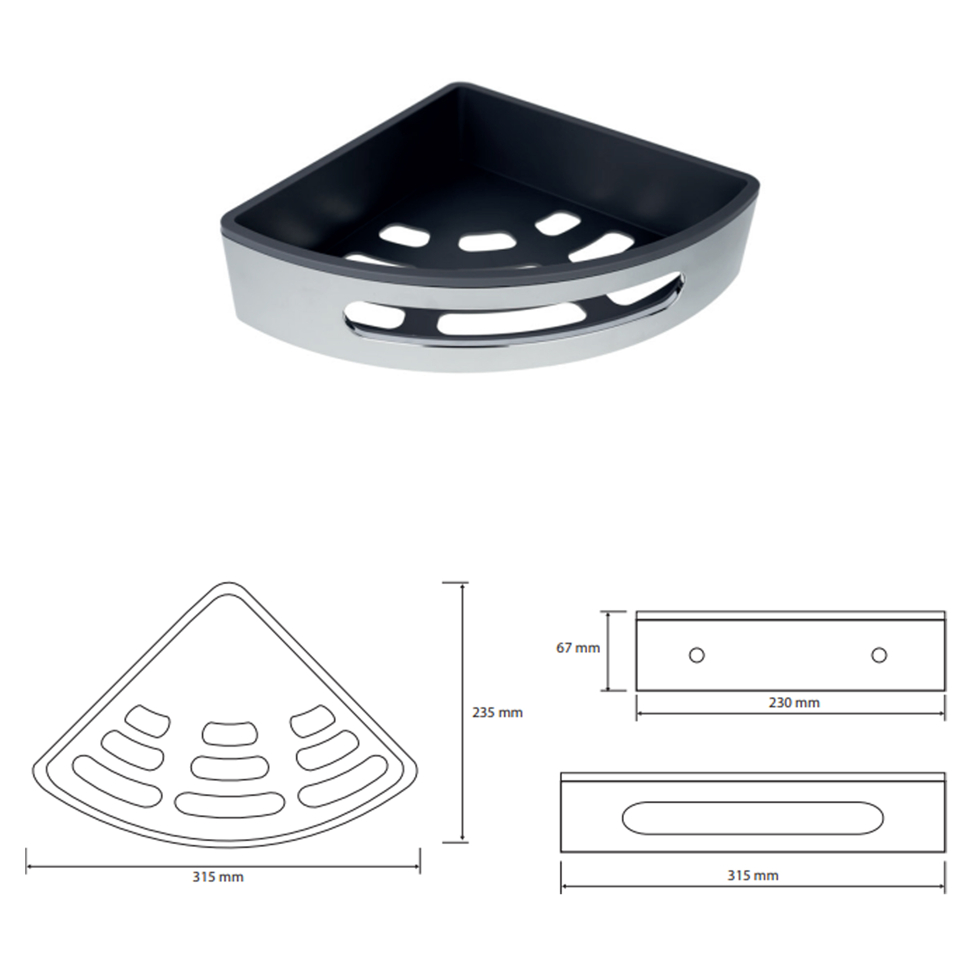Serien passar perfekt vid duschhörnor, badkar och tvättställ. Ett särskilt praktiskt inslag är den hängande hyllan, som är flyttbar och enkel att ta bort – en flexibel lösning för ett modernt och organiserat badrum.