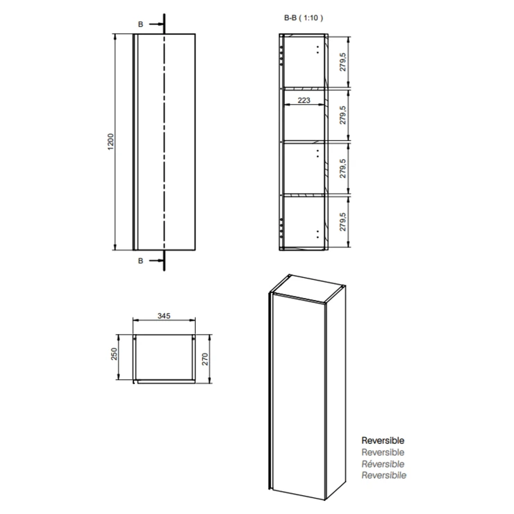 - Skabsdøren kan monteres til åbning fra venstre eller højre side efter præference