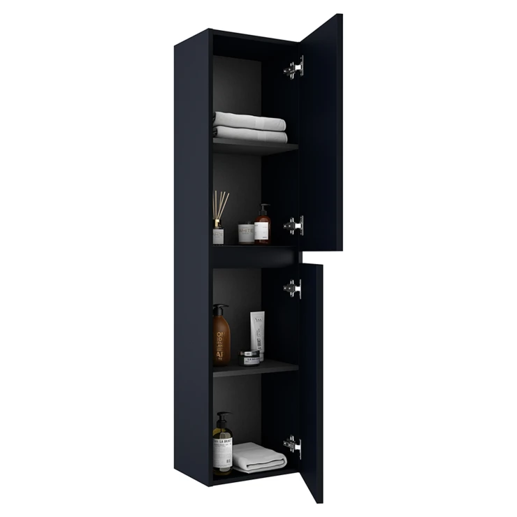 Den skjulte inderskuffeløsning bevarer det minimalistiske udseende, samtidig med at den tilbyder praktisk funktion i hverdagen og gør det lettere at holde orden på badeværelsesartikler.