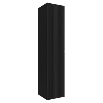Det har samma karaktäristiska vertikalt spårfrästa fronter och färger som tvättställsskåpen, vilket skapar en harmonisk och enhetlig helhet.