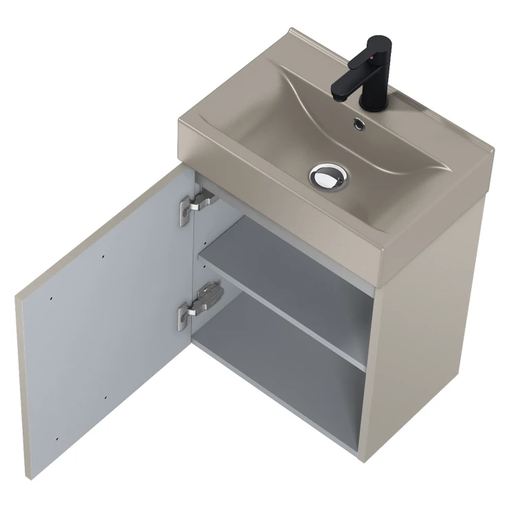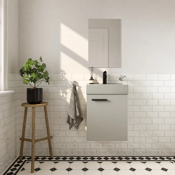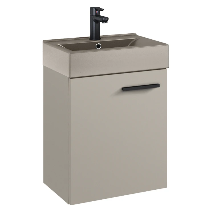 Komplet Badeværelsesmøbel Petit Disgrå Mat 45 cm med Vask Disgrå Mat, Håndvaskarmatur & Spejl
