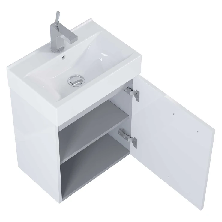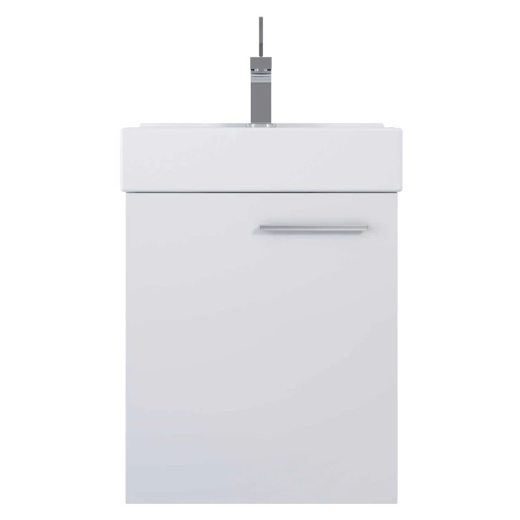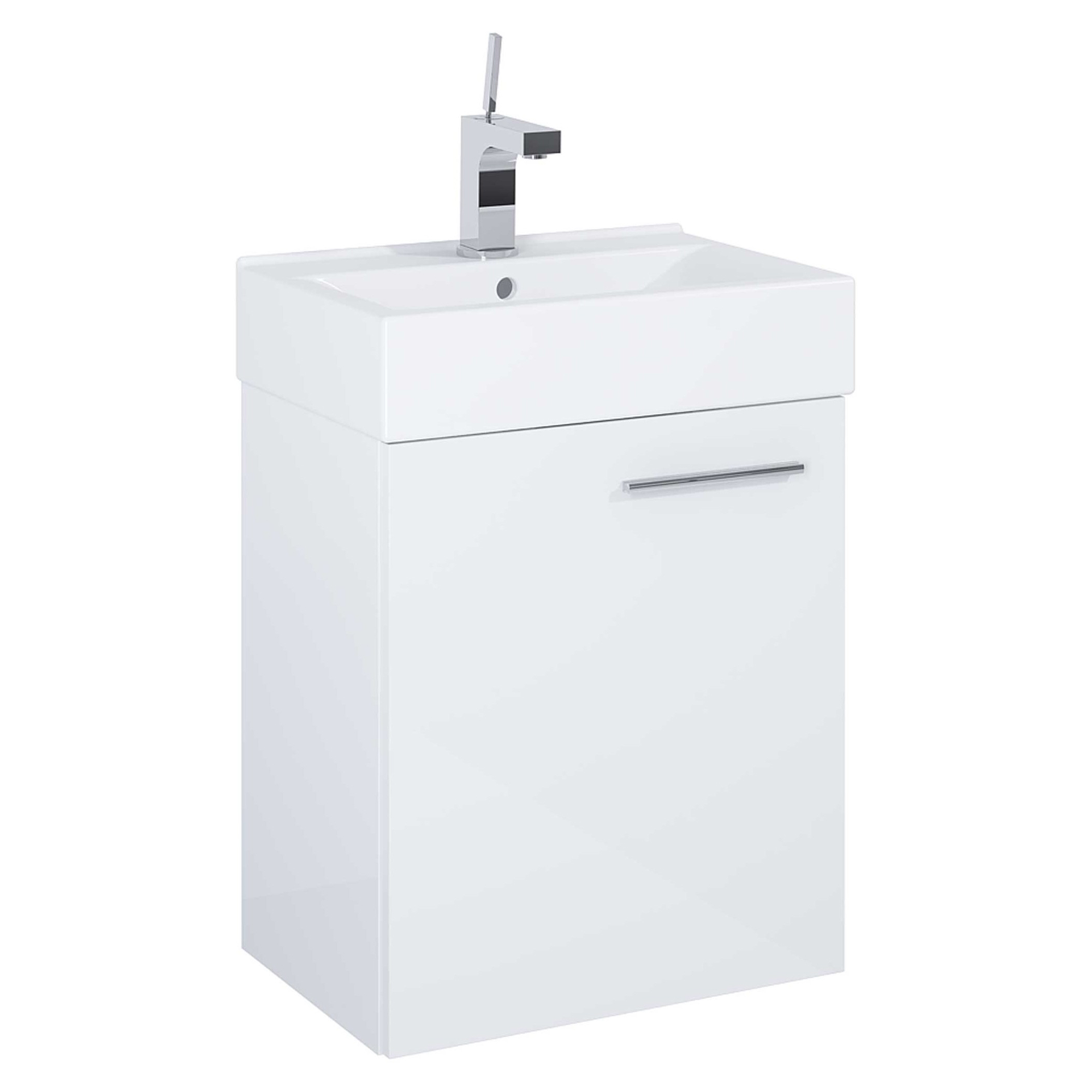 Komplet Badeværelsesmøbel Petit Hvid Blank 45 cm med Vask Hvid Blank, Håndvaskarmatur & Spejl