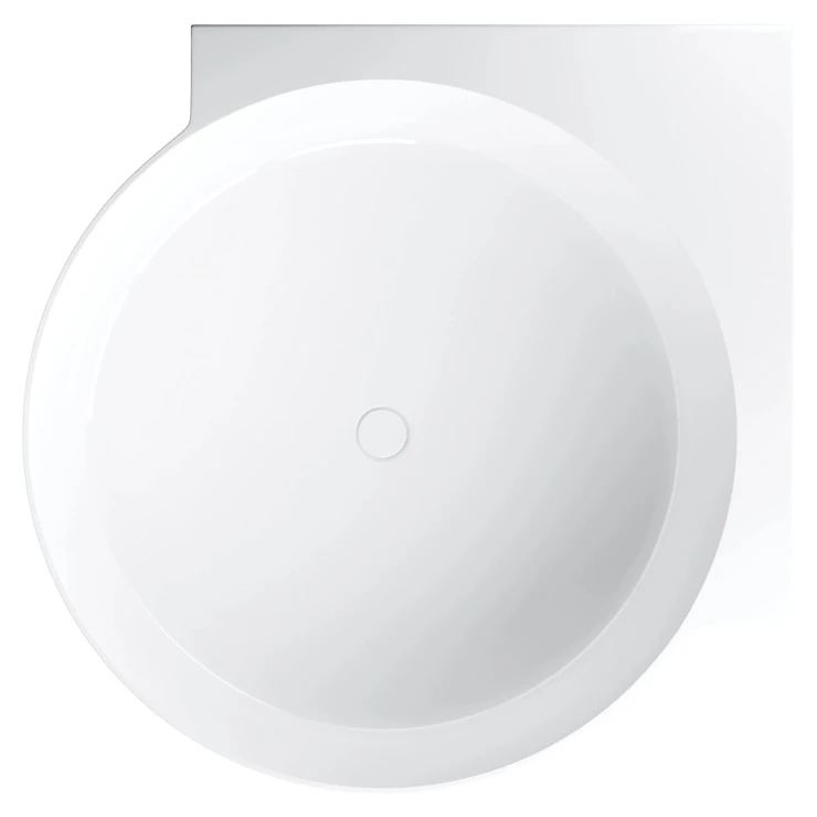 Tillverkat i det innovativa kompositmaterialet M+ (baserat på dolomitsten), vilket ger perfekt finish och hög hållbarhet. Den blanka ytan reflekterar ljuset naturligt och har en klassisk vit finish.