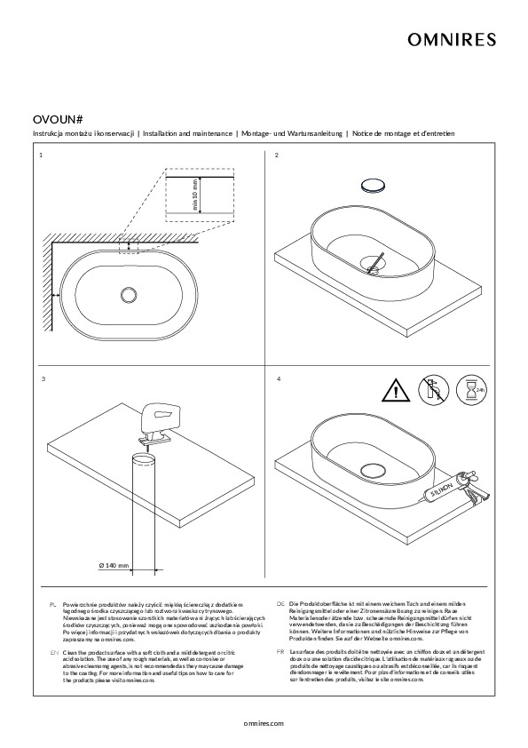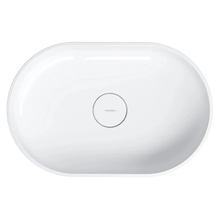 Tvättstället för bänkskiva från OMNIRES OVO-kollektionen utmärks av en uttrycksfull siluett med perfekta proportioner, inspirerad av två halvcirklar. De harmoniskt formade väggarna avslutas med en plan kant som framhäver den eleganta designen. Inuti skålen säkerställer den matchande täckbrickan en stilren och enhetlig finish.